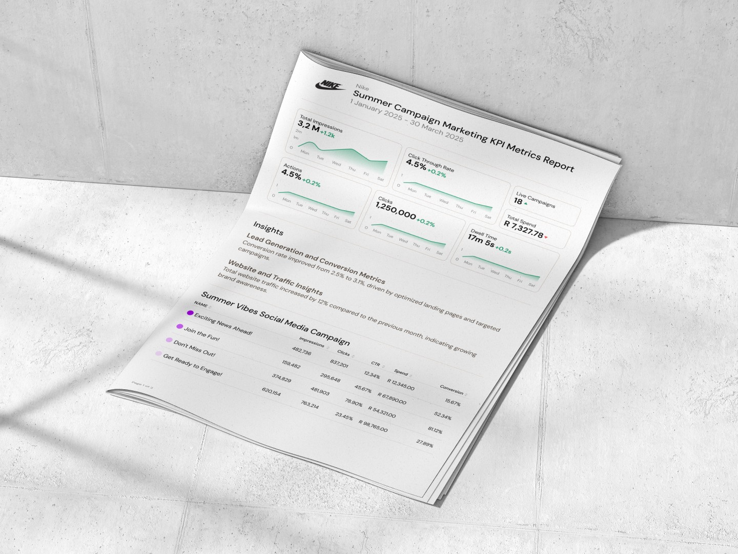 Access to analytics is essential for marketers as they optimize campaigns in real-time and deliver performance reports to clients. Our biggest challenge in designing the Naritive platform was understanding and consolidating the metrics that are most important to marketers. The native analytics available for each social media platform offer different metrics based on platform capabilities. To ensure that marketers would adopt Naritive as their primary ad management tool, we needed to offer customisable dashboards.